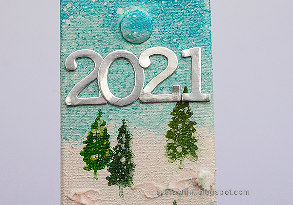 The Simon Says Stamp Forest Scenery stamp set was used for the cover of my December Daily journal and is therefore used more than the other stamps on the tags. And because I love trees and deer.
