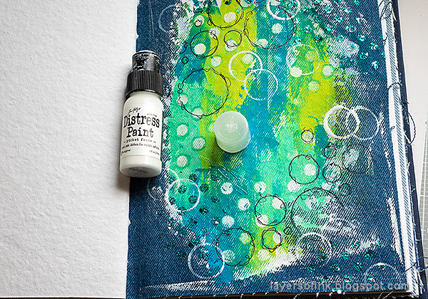 Stamp more circles with white paint, using the lid of the paint bottle as a stamp.