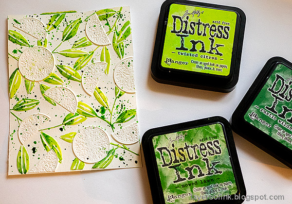 Using different papers and inks can change the look of your project a lot. Sometimes you might also struggle to get a good result if you use a paper and ink combination that don't work well together. On the card to the left, I used Distress Ink combined with watercolor paper. On the card to the right, I used