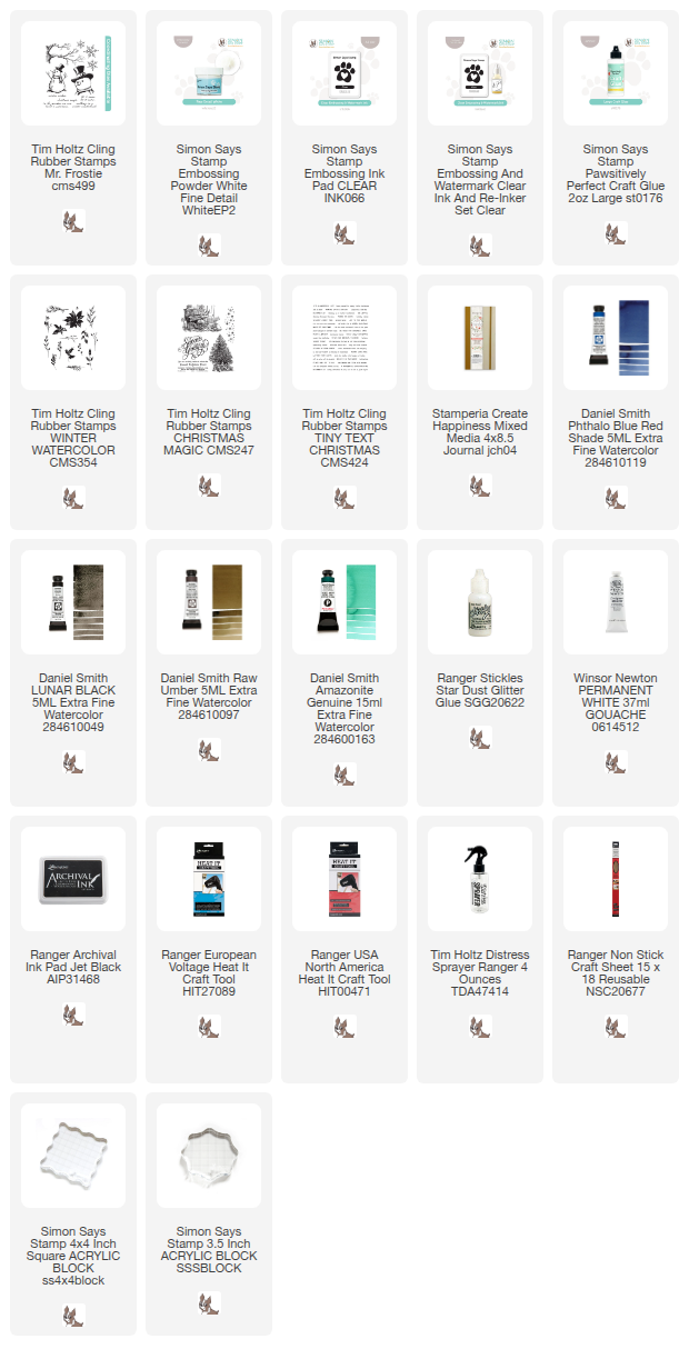 White emboss snow in the sky part and pine branches at the base of the page. I use Simon Says Stamp Embossing Ink and White Embossing Powder.